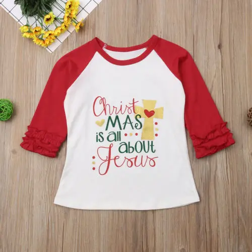 Offer Noël nouveau-né enfants bébé filles mignon hauts à manches longues à volants T-shirt tenues vêtemen